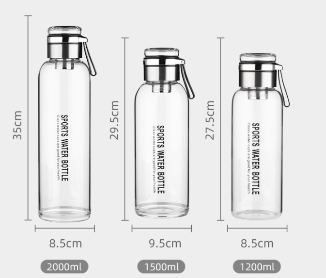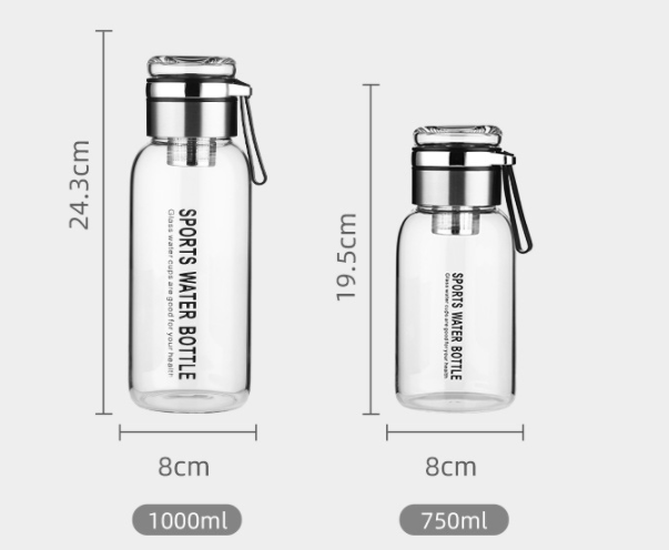 Glaswasserflasche mit großem Fassungsvermögen und Filtersieb